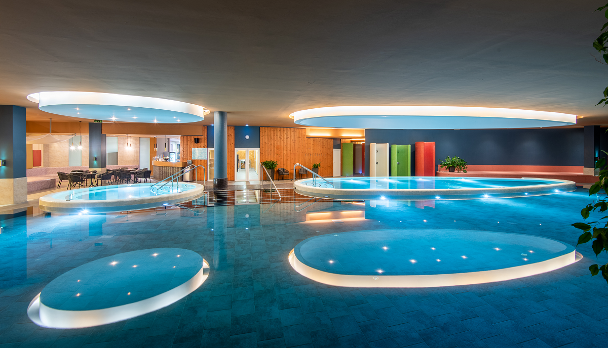Hosté vyhledávající aktivní odpočinek se mohou těšit na vodopád, vířivky a vířivé bazény. Vnitřní zážitkový bazén je propojen s venkovním wellness bazénem skluzavkou. Prosklená stěna na jižní straně bazénu poskytuje vizuální propojení s venkovní pláží a jejím zázemím.