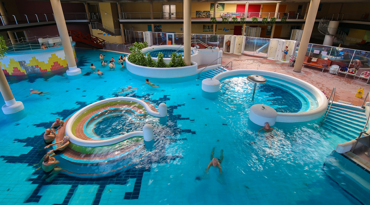 Wellness, lázeňský a koupací komplex Sunshine Baths Aquapolis Szeged spojuje s naším hotelem koridor, který našim hostům umožňuje pohodlný přístup do vodního městas 4400m2 vodní plochy a nejdelším tobogánem v Evropě, a to vjakémkoli ročním období a za jakéhokoli počasí.